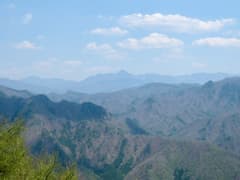 さて、ジュエリー探索はこのあたりで切り上げ、山歩きに戻る。緩やかな稜線に出て、「世田谷区民健康村鉱石山休憩所」という看板のある第1休憩所を過ぎ、雑木林とカラマツ林の境界を歩くとWCのある東峰に着く。鉱石山の山頂はこのすぐ先だが、先に朝倉山に登って来ることにする。