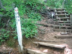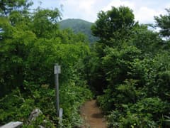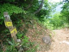 二ノ字の先も階段が良く整備された尾根道を登る。「←捲道(悪路)|→尾根道」という道標のある分岐点は、悪路を避けて尾根道へ。しかし、直後に巻き道を降りて来たハイカーさんを見かける。大した悪路ではなさそう。帰りはあっちを通ろっと(^^)