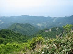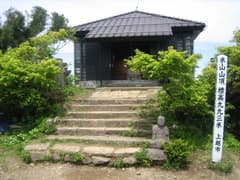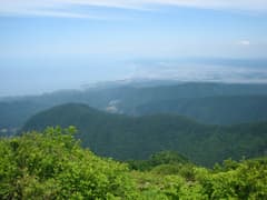 避難小屋は二階建ての立派なもので、ここに泊まって、日本海に沈む夕日を見るのも良さそう。避難小屋から石段を上がった一番高い所に米山薬師のお堂がある。お堂の回りをぐるっと一周すれば360度の展望で、今日は霞んで遠望はないが、登って来た711m峰の山稜、日本海の海岸線、柏崎市街などが見える。周囲には高い山はなく、南にゆったりと稜線を広げた山が目立つくらいだ(帰宅後に調べて刈羽黒姫山と判った)。