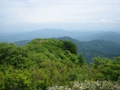 さすが越後の名山だけあって、大勢のハイカーさんが頂上のあちこちで休憩している。私もお堂の裏手に腰を下ろして、缶ビールとラーメンで昼食とする。