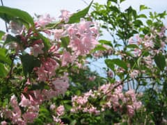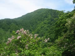 711m峰の手前で巻き道に入る。崩れ易い斜面のトラバース道だが、特に問題はない。この斜面にはタニウツギが一面に咲いていて見事だ。振り返ると、米山が急峻な山肌を見せて聳えている。