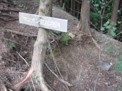 少し先には「マンガン鉱採掘跡」という標識があり、確かに杉林の中に掘り返した穴がいくつか残っていた。ここから急登になり、これを登り切ると「りす平」の標識がある平地に出る。周囲は杉の植林で、りすがいそうな感じはしない。昔はいたのかな。