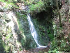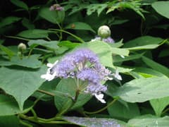 ちょっと驚く出来事はあったが、後は林道をのんびり下る。杉林の中にタマアジサイが多い。途中で、高さ3mくらいの形の良い滝を見る。簡易水道の横を通ると、車を置いた野峰登山口へは5分程。昼食のおにぎりは帰宅して食べた。