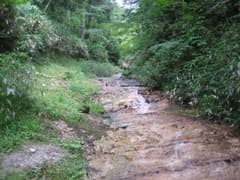 右の沢に小さなナメ滝が見える