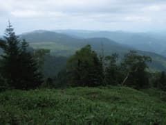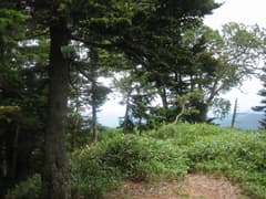 四郎峠へ下る途中で、丸沼温泉で会ったおじさんが登って来るのに出会う。話を伺うと、(私に道を尋ねる前に)間違えて湯沢峠に登り、県境稜線を燕巣山に向おうとしたが、とても無理で引き返したとのこと。さもありなむ。しかし、その後に登り直して来たとはスゴイ(@_@)