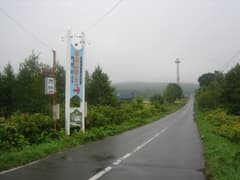 翌日早朝、歩いて倶知安駅に向かい、始発列車に乗って、次の比羅夫駅で下車する。山小屋風の駅舎の前には民家が数軒あるのみ。小雨が降り始めたので、雨具を着ける。国道に出て左手に羊蹄山登山口を示す大きな看板が立っている。晴れていれば、このあたりからは羊蹄山の雄大な姿が見えるはずだが、雨雲に覆われて影も形も見えない(T_T)