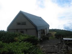 羊蹄小屋は、見晴らしの良い尾根の上に建つ大きな山小屋だ。小屋の前のベンチに荷物を降ろして中に入ると管理人さんがいらして、昼食のラーメンを作っているところだった。中は広く、居心地が良さそう。管理人さんに紅葉の話を伺うと、羊蹄山は独立峰で風が強く、葉が散ってしまうのだが、今年の紅葉は先週辺りから始まって見頃、とのことだった。記念バッジ(500円)を購入して、小屋を出る。