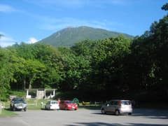 テンションが下がりつつも登山口を目指し、畑の中の真っすぐな道をとぼとぼ歩いていると、ピックアップトラックが追い越して前に止まった。運転していた男性が、登山口まで荷台に乗っていきますか、とありがたーい申し出。喜んで乗せて貰う。20〜30分は時間を短縮して、登山口の半月湖野営場に到着する。