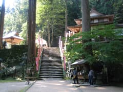 投入堂と崖に感動して往路を戻り、登山者受付で輪袈裟を返却して、下山時刻を報告する。その後、境内にある宝物殿にも立ち寄る。ここの見所は右手右足をエイッと振り上げたダイナミックなポーズの投入堂本尊・蔵王権現像と、約1000年前に作られたという木造狛犬。撮影禁止なので、残念ながら写真はない。