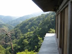 靴を脱いで、お堂の廻り縁を一周してみる。飛び出すような高い場所にあって眺めは抜群だが、手摺がない上に、幅も狭くて微妙に外傾しているので、なかなか危ない。