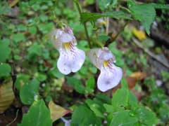 ロープウェイ山頂成就駅に着くと、小雨が降っている。道端には、剣山でも見たハガクレツリフネが雨に濡れて群生していた。門前に宿が立ち並ぶ成就社に到着して、WCを済ませて出て来ると、あ〜ら嬉しや、何時の間にか晴れ間が広がっていた。成就社でさらなる天気の回復を祈願する。