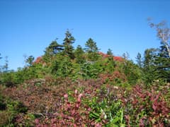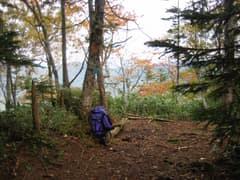 最初は晴れていたが、高度が上がるにつれて雲が多くなり、風も冷たい。ポツポツと始まった紅葉も、日光が当たれば映えるのだがなあ。木の間から燧ヶ岳や至仏山を垣間見るようになると、頂上へはあと一踏ん張りだ。