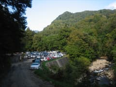 あとは林道をテクテク歩いて大清水に戻る。一ノ瀬橋を渡ると急に賑やかな話し声が聞こえて三平峠からの道と合流し、大清水に到着した。さすがに駐車場は満杯だ。このあたりまで紅葉が降りて来るのは何時頃だろうか。