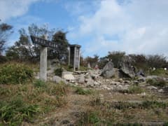 急斜面を登りきった所には「覚明霊神、一心霊神、普寛霊神」と刻まれた石碑がある。これも後で調べると、木曽御嶽の山岳信仰と関係があるようだ。ツツジ林をくぐり抜けると、鍋割高原(獅子が鼻)からの登山道と合流する。そして、開けた気持ち良い笹原の斜面を登って、鍋割山の頂上に到着した。