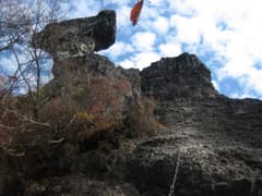 今日は鎖場のウォームアップが充分なせいか身体が軽く、丁須の頭のてっぺんに登れそうな気もしたが、危険を冒す必要もないので、今回もパスする。