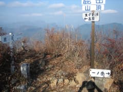頂上にはなにやらご立腹の面相の石像がおわして、その後ろから、下仁田市街や鍬柄岳、大桁山、妙義山、鹿岳にかけての眺めが良い。隣りには、これも石像の有る四ッ又山P2、遠くには頂きが白くなった浅間山が望まれる。