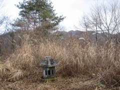頂上には古い石祠と三等三角点がある。展望は、枯れ草と雑木林に囲まれて榛名山と山麓の牧場が垣間見えるだけだ。お菓子等を食べて少し休んだのち、往路を戻る。ゆっくり歩いても往復で1時間足らずの山で、”小柄”だけど雰囲気はいい山でした。