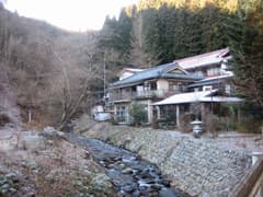 大戸からはR145を経由して宿に直行する。途中の郷原付近では、峨々とした岩櫃山が良く眺められた。この山も機会があれば登りたい。R145から川中温泉への脇道に入ると、八ッ場(やんば)ダムのR145付替道路工事が大々的に行われていたが、そこを過ぎれば静かな山間となり、その奥に一軒宿のかど半旅館があった。
