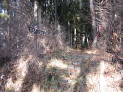 往路を戻り、分岐から北峰にも立ち寄ってみる。頂上の北側は岩壁だが、雑木林に囲まれて判らない。立派な道標はあるものの、灌木も少し被さり気味で、訪れる人も南峰に較べると少ないのかも知れない。
