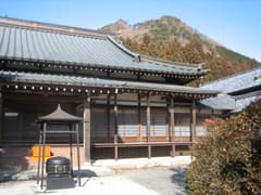 次はのこぎり山だ。彦間川を渡り、クロマツの大木(推定樹齢400年)がある参道を通って永台寺に向かう。門前の説明板によると、永台寺は奈良時代天平年間に行基が開山草創、現存する仁王門は文禄2年、本堂も天保年間の上棟とのこと。阿吽の仁王像のある仁王門をくぐり、のこぎり山が背後に控える本堂の前に出た。