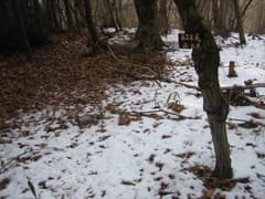 暫く進んでふと気が付くと、ザックのベルトに掛けていたデジカメがない。さてはさっきのトラバース(ちょっと灌木を漕いだりした)で落としたか。ザックを置いて、慌てて拾いに戻る。道に迷っている途中で落としたので、来た道を戻るのは難しかったが、運良くデジカメを発見。良かったー。