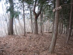 「こんぴらの道」を左から合わせた先に、少し荒れ気味の金比羅宮の小さな社殿があり、傍らに金比羅の妙泉という泉がある(ただし水たまりで、飲めるものではない)。さらにひと登りで、城砦の遺構らしい段差を越えて要谷山の頂上に着いた。樹林に囲まれて展望は多高山が望める程度だが、ベンチが設置されていて休憩には良い所だ。