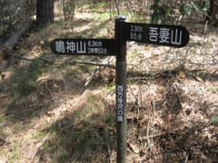 杉林の中の林道をそのまま辿ると、吾妻山〜鳴神山縦走路に出た。鳴神山方面に向かうとすぐに西方寺沢の頭で、その先は源頭の伐採地に出て展望が開ける。今日は天気がいいので、この界隈を歩く人も多く、短い間に数パーティーのハイカーさんとすれ違う。