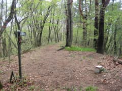 金沢峠で汗を拭って一休みしてから、大形山へ急坂を登る。大形山の頂上は相変わらず展望はないが、ここから岡平にかけては雑木林の尾根で雰囲気が良い所だ。慰霊祭のピークは岡平への丁度中間にある。