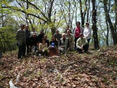 現地には既に「オッサンの山旅」のオッサンご夫妻とお気楽マサちゃん、「クタビレ爺イの山日記」の爺イ先生がいらした。ほどなく代表幹事さんもいらして、ネットを通じて交流のあった山歩き愛好の諸先輩方に初めてお会いすることができた。本隊のご遺族、桐生地質の会、桐生山野研究会、楚巒山楽会の方々等も到着し、慰霊祭が始められた。周囲の木々の鮮やかな新緑がきれいで、桐生の山を愛した方の追悼に相応しい日だと思った。