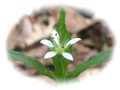 天気が回復して日も射す中、吾妻耶山の南斜面を下る。林間にはヒゲネワチガイソウ(写真右)やシロバナエンレイソウがぽつぽつ咲いている。下りきった鞍部が赤谷越峠で、スキー場を経由する道が合流する。稜線通しに歩けばスキー場は見えないが、すいせん祭り開催中とのことで(5/25まで)、BGMがなにやら漏れ聞こえて来る。