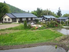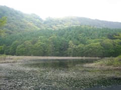 大峰沼は樹林に囲まれ、水面に大峰山の緑を映してひっそりと佇んでいる。対岸には大峰キャンプ場の三角屋根の小屋が見える。沼を半周して小屋に向かう。周辺の林間にはバンガローが点在するが、今は使われているのだろうか。小屋の前にはベンチがあり、裏手にはWCもある。大峰沼にコロコロと響くカエルの声を聞いていると、ますます深い静寂を覚える。