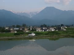 安曇節に「なにか思案の有明山に小首かしげて出たわらび」と唄われる有明山は、安曇野のどこからでも台形の特徴ある山容が仰がれる山である。全山深い樹林に覆われて、常念山脈を隠す屛風のような黒々とした山影が目を引く。標高は2268mで、北アにあっては高峰ではないが、急峻な山として知られている。山麓に有明山神社、頂上稜線には北岳、中岳、南岳にそれぞれ奥宮があって、山岳信仰の山でもある。