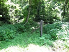 満寿山からジグザグに下ると、再び緩い尾根道となり、「水場」という道標が倒れているのを見る。この辺りは、尾根のすぐ右下を沢が平行して流れる面白い地形となっている。水場の道標から約8分で沢のそばを通る個所がある。ここには「黒岩のぞき・水場」という道標がある。沢の水量は多いが、泥混じりであまり飲む気はしない。