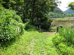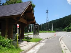ブナの大木の林を抜けると杉林が現れ、道幅も広くなって人里が近いことを感じる。グラウンドの端に到着し、右に街道の湯への道を分ける。そちらには登山者用の駐車場もあるようだ。左の八木沢のバス停への道を進むと、畑の横を通って八木沢の集落の真ん中に出る。道標に従って左に行くとR17に出て、八木沢口バス停に着いた。タイミング悪く、越後湯沢駅行きのバスが走り去るのを目撃してしまった。次のバスは1時間後だ。しかし、たまにはのんびり待つのも悪くない。バス停のベンチで昼寝をしていたら、1時間はあっと言う間だった。