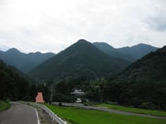 広い谷に沿って奥に進むと、両岸の山は徐々に高く険しくなる。途中、萱瀬ダムのダムサイトから、経ヶ岳の鋭峰を仰いで、ほぇ〜、意外になかなかの山でないの、と感動。佐賀県に抜けるR444から分岐して黒木に向かう。黒木はぐるりと急峻な山並に囲まれた山村だ。U字に折り返した所に広い駐車場があり、ここに車を置く。他の車はないが、平日だから当然か。