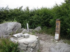 平谷越からは一転して稜線を小気味よく登る道となる。岩場があり、ロープが下がっているが、なくても登れるレベルだ。岩場を登り切ると傾斜が緩み、経ヶ岳の頂上に着いた。