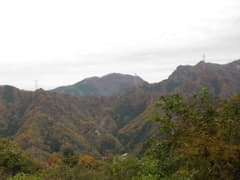ここから少し急な坂道となって、黒滝山へゆっくり登る。振り返ると、色付いた山々の向こうに大屋山が頭をのぞかせていた。五老峰入口の峠を越えると下りの山道となり、黄檗宗黒滝山不動寺に到着した。稲含山や小沢岳を望む見晴しの良い場所だ。