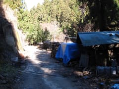 というやりとりがあって、貴重な情報をゲット。尾根には取り付かずに(実際、取り付けそうな個所もなかった)沢の右岸に沿って地形図にない林道を歩くと、伺った通り炭焼き小屋があった。