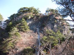 展望岩は、岩壁の基部から左へトラバースする山道があり、案ずる程のこともなく稜線に出た。稜線を右に進んで岩峰の突端に行くと、こちらからも展望が良い。少し標高が高い分、第3の岩場から見えなかったトヤ山まで見える。また、南には大日向あたりの集落を見おろすことができる。ということは、山麓からも展望岩が見えるに違いない。