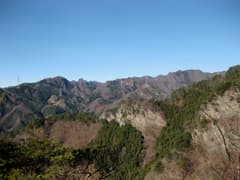 今日は穏やかで雲一つない青空が広がり、西上州の山々の素晴らしい展望が楽しめる。展望岩の左には帯状に岩壁が続き、その向こうに毛無岩付近の稜線やローソク岩、立岩、大屋山が見える。また、大岩・碧岩から三ッ岩岳にかけての眺めも良い。