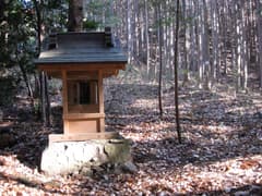 登山口から間伐作業中の杉林の斜面を登る。新しい作業道を横切って登ると、尾根上の十字路にある山の神様に着いた。短い登りだが準備運動には十分で、上着を全部脱いでTシャツ1枚になる。それにしても今日は素晴らしく晴れて暖かい。冬用に新調したトレッキングパンツを今回初めて着て来たのだが、保温性が良くて暑いくらいだ(^^;)