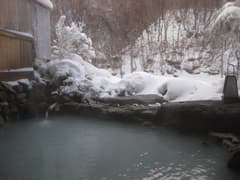 五色温泉を通ってヘアピンカーブの急坂を上がり、山田牧場への道を分けて谷底に下ると、細い橋を渡った対岸に数軒の宿が建ち並ぶ七味温泉に到着した。周辺は一面の銀世界だ。今回の宿の渓山亭にチェックインし、早速♨️へgo!源泉掛け流しの白濁したお湯で、露天風呂から眺める雪景色は最高。硫化鉄を多く含む泉質だそうで、刷り立ての新聞紙に触ってインクが着く様に、肌の皺が黒くなるのには驚いた(もちろん、洗えば落ちる)。