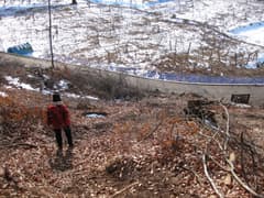 パンとケーキを軽く腹に入れて、往路を戻る。頂上直下の急坂を慎重に下り切れば、あとは気楽な尾根歩きだ。登山口に着くと、S&Sは5分程前に着いたばかりとのことだった。お待たせさせずに良かった。下りはアッという間の気がしたが、45分とそれなりの時間がかかったのは、滑り易い道を緊張して歩いたからかも知れない。しかし、この辺りの里山もなかなか面白いことを認識しました。