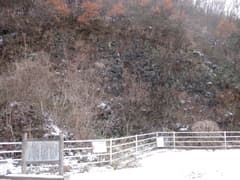 松川に沿って小布施方面に下ると、右側に雁田山南面の岩石採取場が見えて来る。ここは昭和40年代から大規模に採石され、上信越道や長野新幹線、長野オリンピックの建設にも砕石を供給したと言う。規模や標高は異なるが、秩父の武甲山と似た状況にある山だ。