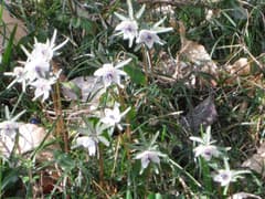 さて、花を見に行きますか。セツブンソウ自生地は山の端にあり、遊歩道で一周できる。林間の草地には、びっしりとまでは行かないが、一面にセツブンソウが咲いていて見頃。小さくてかわゆい花だなぁ。本格的なカメラを持って来ている人が多く、熱心に写真を撮っている。花まで距離があるので、私のコンデジのズームではちと無理がある。こういう場面では、デジ一とか欲しくなるかも(^^)