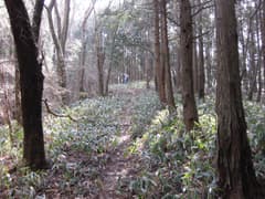 三峰山から下るとき、頂上のすぐ北で林間に大きな窪地があることに気がついた。これは地形図の等高線にも現れている。カルスト地形に特有のドリーネかと思ったが、帰宅後にネットで検索すると、石灰岩の採掘でできた山中の空洞が陥没して生じたものらしい(三峰山 (栃木市・鹿沼市))。この辺の藪漕ぎは陥没の危険があるので、要注意。