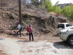 展望を楽しんで暫く休憩したのち、下山にとりかかる。往路を尼巌山との鞍部まで戻って、そこから岩沢登山口に降りた。岩沢登山口の駐車場には16時近くに到着。もう他の車はない。当初の予定より長いコースを歩いたので、下山がちょっと遅くなった。急いで宿に帰って、17時15分頃に帰着。温泉に入ったあと、腹を減らして夕食へ。この晩は鹿鍋でした。