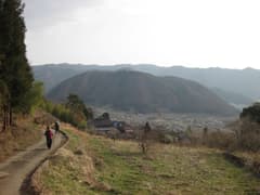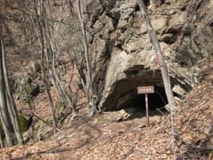 駐車場の奥に進むと、すぐに尼巌山と奇妙山の分岐があり、左の尼巌山への山道に入る。雑木林と杉林の混じる山腹を登って行くと、「天の岩戸」への道が分岐する。天の岩戸に立ち寄ってみると、岩壁の下に洞窟が半円状の入口を開けていた。奥はあまり深くない。