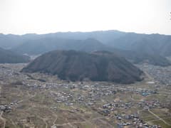 宿で朝食を頂いたのち、高速を使って松代に向かう。3連休中日で好天とあって、車が多い。長野ICで降りて松代市街を抜けると、扇状地に田園風景が広がり、その真ん中にプリンのような山容の皆神山(みなかみやま)が鎮座している。皆神山は、太平洋戦争末期には大本営の移転が計画されて長大な地下壕が掘削されたり、1960年代には松代群発地震の震源になったり、山の形から「太古に作られた世界最大のピラミッド」というとんでもな説があったり、と、いろいろ興味を引かれる山だ。