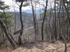 白葉峠への道を分け、一色展望台への稜線を辿る。「桐生市菱町一丁目最高峰」というローカルな標識のある小友沢の頭は、あまりピークらしいピークではないが、このコースは小さなアップダウンが多く、眺めもところどころで開けて、変化に富んだ尾根歩きが続く。